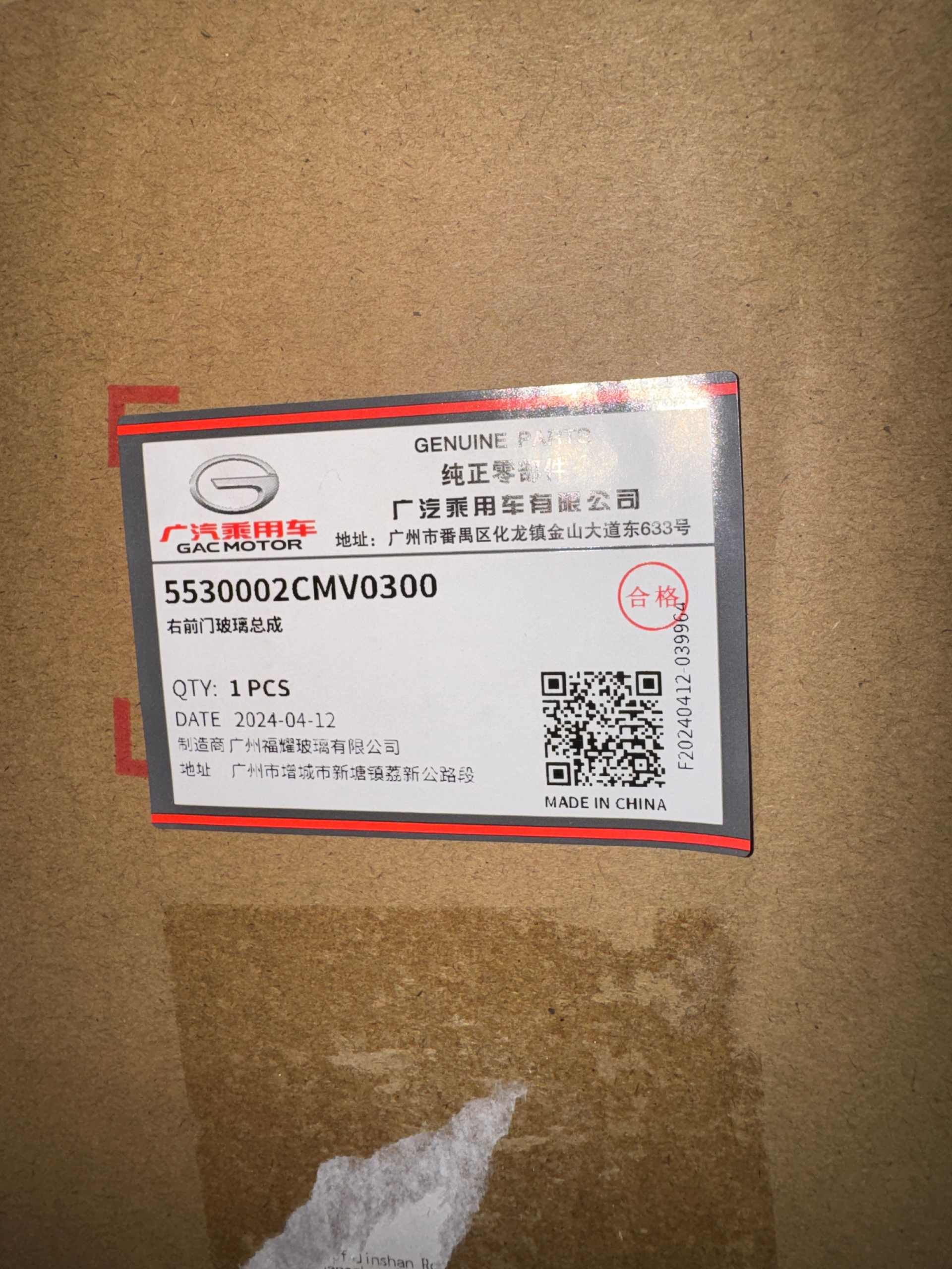 Genuine GAC front right door glass engineered to provide clear visibility, structural integrity, and durability. Manufactured to OEM standards for precise fitment, this glass meets safety and optical clarity specifications of the original equipment. Ideal for replacing broken or damaged door glass to restore factory-level appearance and function.